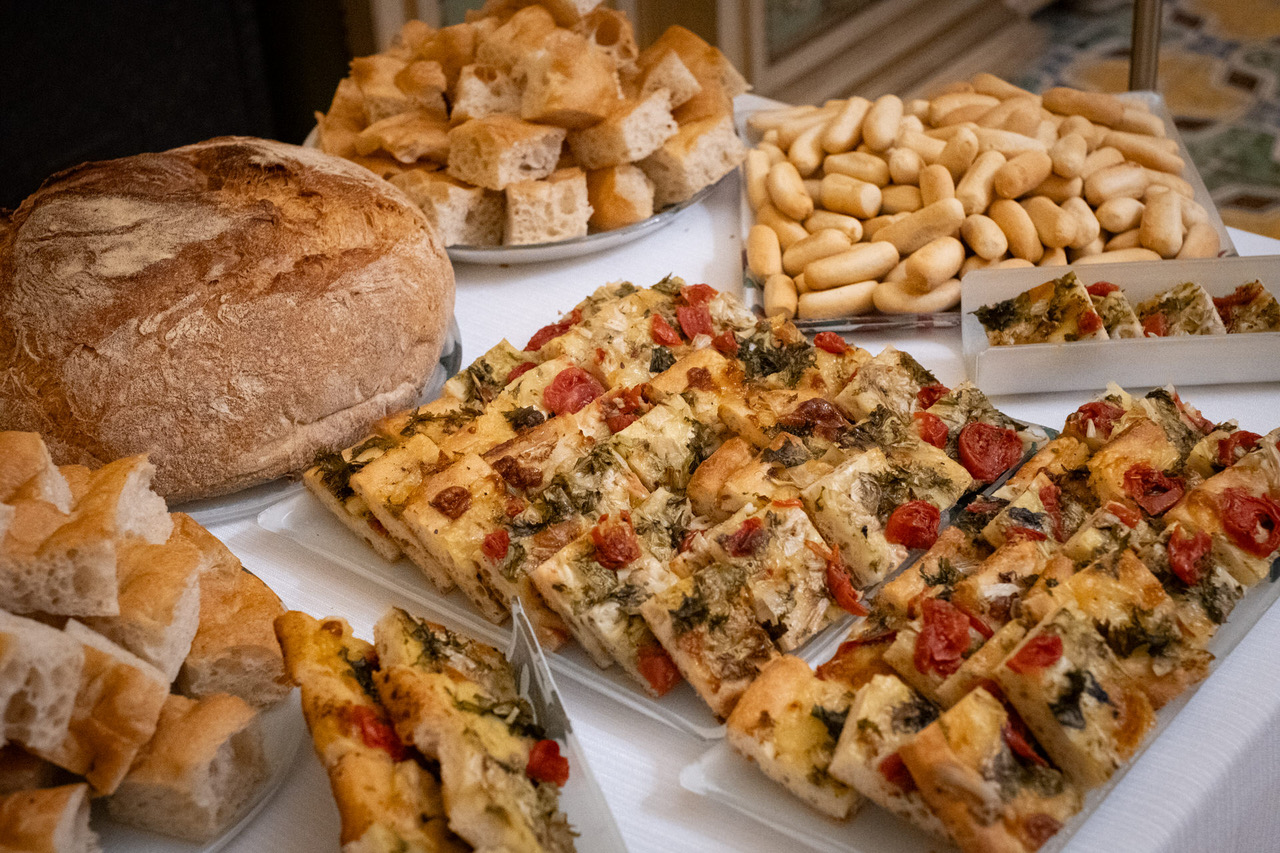 Per l’aperitivo di benvenuto, il maestro panificatore ha proposto la focaccia messinese tradizionale con farina di grano di Maiorca, la focaccia bianca con farina di grano perciasacchi e grissini di Maiorca. Durante la cena, invece, ha accompagnato i piatti dello chef Baglieri con un cestino del pane composto da grissini con farina di grano Maiorca, paninetto con farine di grano Russello e Timilia e paninetto ai cereali con topping di fiocchi d’avena e semi di lino.