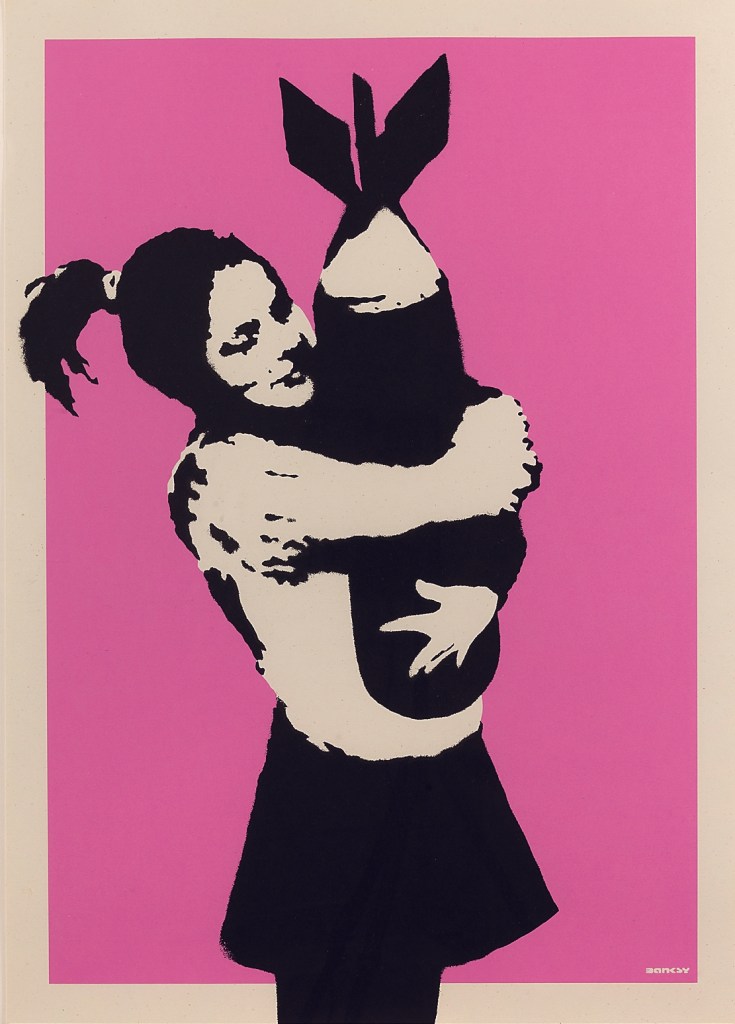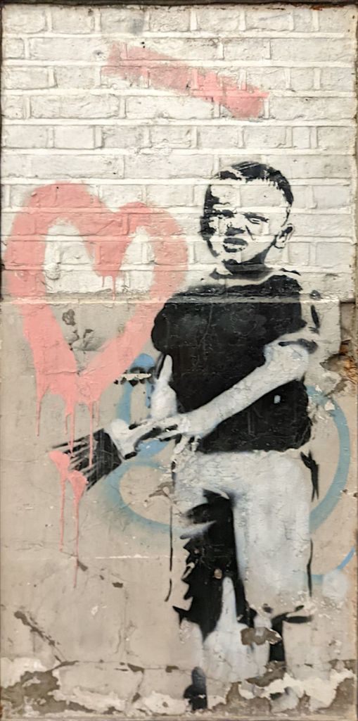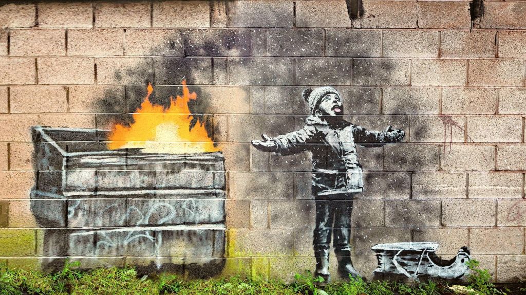 Oltre alla famosissima “Girl with balloon“, che tutto il mondo conosce e ama e che raffigura una ragazza con la mano tesa verso un palloncino rosso, a forma di cuore, portato via dal vento, in mostra si potrà ammirare anche il “Season’s Greetings“, un muro di grandi dimensioni dipinto da Banksy nel 2018 a Port Talbot, in Galles.