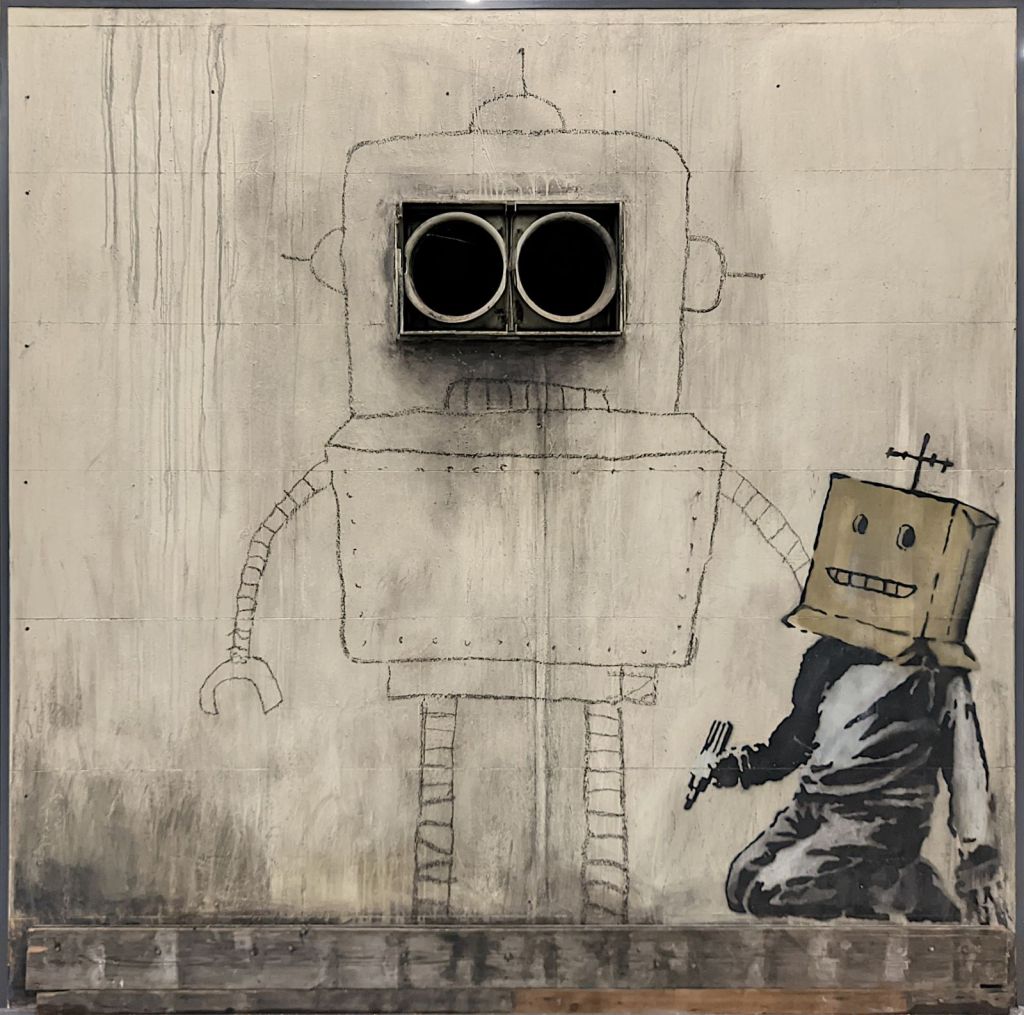 Altri due muri originali, dipinti da Banksy e provenienti da collezioni private, saranno invece esposti alla GAM, insieme alla selezione delle opere. Come “Season’s Greetings”, anche “Heart Boy” e “Robot/Computer“, hanno come protagonisti giovani adolescenti, rappresentanti di una nuova generazione che sembra essere particolarmente sensibile alle tematiche intorno alle quali gravitano gli interessi dell’artista inglese.