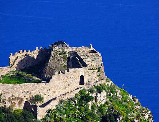 Il Castello Arabo-Normanno di Taormina (detto anche Castello di Monte Tauro) sorge in posizione elevata e domina l’omonima cittadina. Questa sua posizione lo connota certamente, assieme al Teatro Antico di Taormina, come una delle due acropoli che fin dai tempi remoti costituivano punti strategici di controllo delle vie di passaggio da Catania a Messina (fino al 1830 infatti, con la costruzione della strada litoranea, la direttrice nord-sud passava obbligatoriamente per il territorio di Taormina).