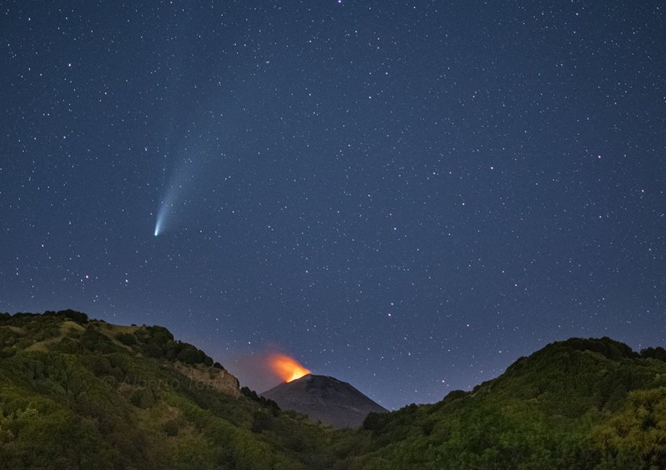 Un romantico bacio tra la cometa Neowise e l'Etna. Lo splendore della natura è stato catturato dal fotografo Alberto Torrisi, con uno scatto che lascia senza fiato. Neowise, nel s...