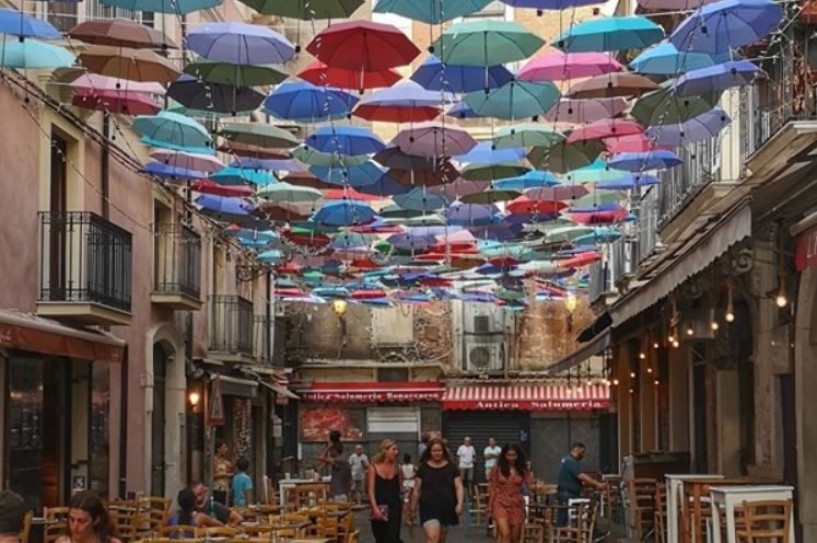 La Pescheria di Catania si colora ancora di più, con tanti ombrelli di ogni tonalità. I visitatori di via Gisira, nel cuore del centro storico della città, possono ammirare un v...