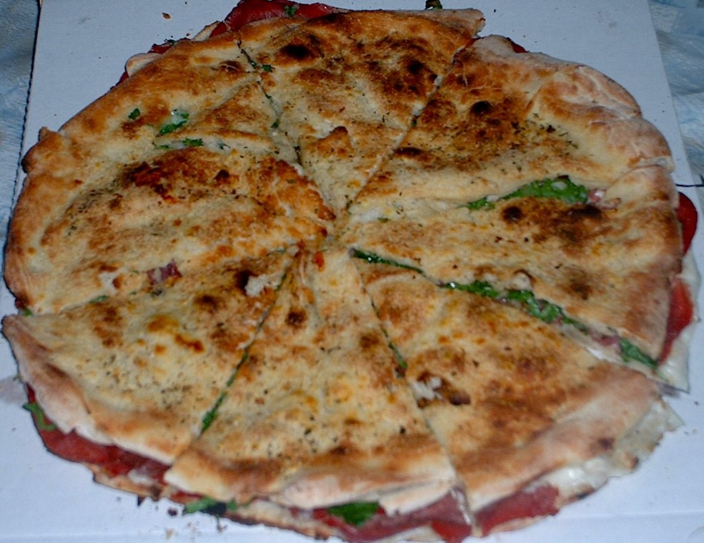 Un delizioso prodotto siciliano: il Pizzolo di Sortino. Si tratta di una pizza tonda, leggermente più spessa, superficialmente condita con olio, origano, parmigiano e sale (a mo...
