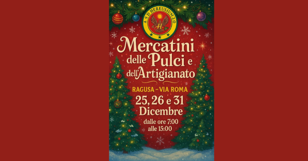 Mercatini delle Pulci e dell’Artigianato a Ragusa: tre appuntamenti natalizi in via Roma tra vintage, artigianato e tradizione locale.