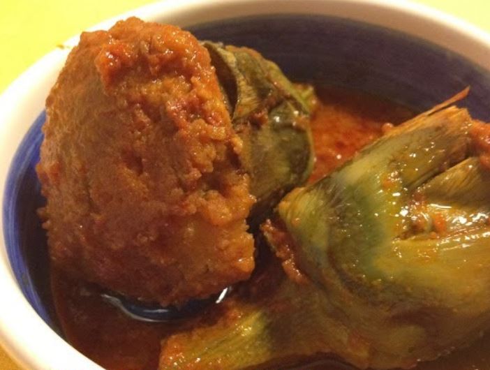 Ricetta siciliana per San Giuseppe: Carciofi col Tappo. In siciliano si chiamano Cacocciuli cu' tappu r'uovo. Sono, molto semplicemente, carciofi imbottiti nel sugo: un secondo dav...