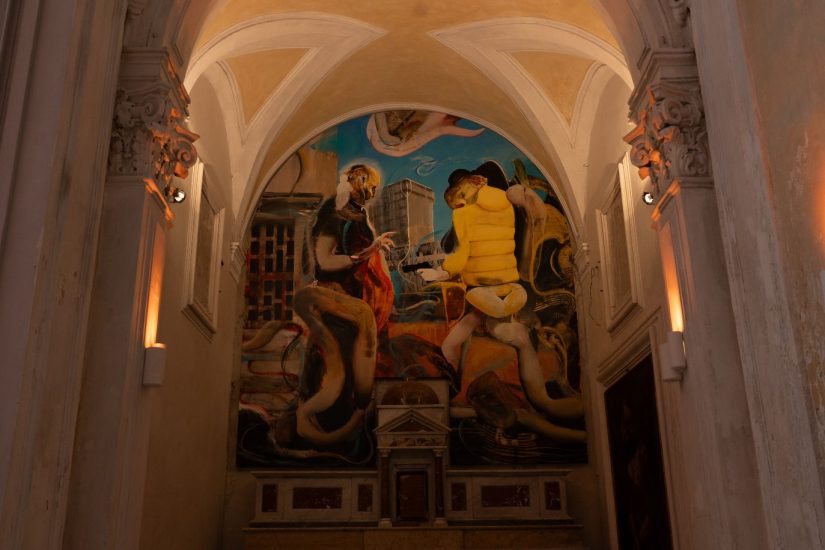 “Abbiamo studiato con attenzione la storia della chiesa e deciso di mantenere durante il giorno la luce naturale, introducendo un “effetto candela” a luci led per la sera: insomma una visione antica, intima, delicata che cambierà con il passare delle ore, ma metterà in risalto le cappelle e la statua lignea della Madonna della Mazza, vera padrona di casa” spiega Gabriele De Palo che ha lavorato con l’architetto Rosanna Costantino e Sinergie Group per l’installazione. L’intervento è stato sostenuto dalla Galleria Thaddaeus Ropac e dalla Fondazione Ghenie Chapels. “Ri-illuminare una chiesa è sempre una piccola impresa, difficile: la luce non è un fatto tecnico ma emozionale, e infatti non abbiamo cercato un light designer ma un direttore della fotografia. Vogliamo vivere la chiesa della Mazza in divenire, concentrandoci in futuro sulla quadreria” ha detto Alessandra Borghese, presidente della Fondazione Ghenie Chapels. “Quando ho chiesto ad Adrian Ghenie cosa pensava di questa nuova illuminazione, lui mi ha risposto che era felice perché così risaltava il suo tratto e il suo pensiero. Mi basta questo per capire che è stata la scelta giusta” è intervenuto padre Giuseppe Bucaro, componente del consiglio di indirizzo della Fondazione.