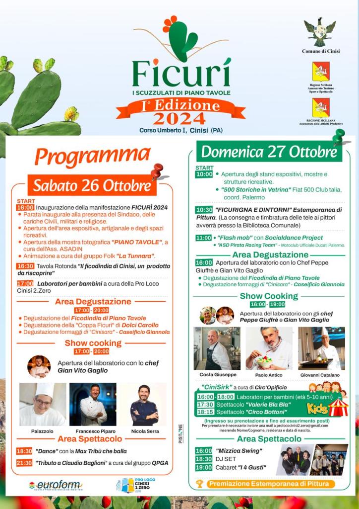 Gioacchino Migliore, assessore allo Spettacolo e al Turismo, ha affermato: “L’evento ‘Ficurì’ rappresenta un’occasione straordinaria per rilanciare Cinisi come centro di attrazione turistica, non solo per i nostri concittadini ma anche per i visitatori provenienti da tutta la Sicilia e oltre. Abbiamo creato un format che unisce cultura, enogastronomia e spettacolo, dando spazio a momenti di intrattenimento musicale e artistico che renderanno il Corso Umberto I un vero e proprio palcoscenico a cielo aperto. Lavoriamo affinché questa manifestazione diventi un appuntamento annuale e un simbolo della promozione del nostro territorio”.