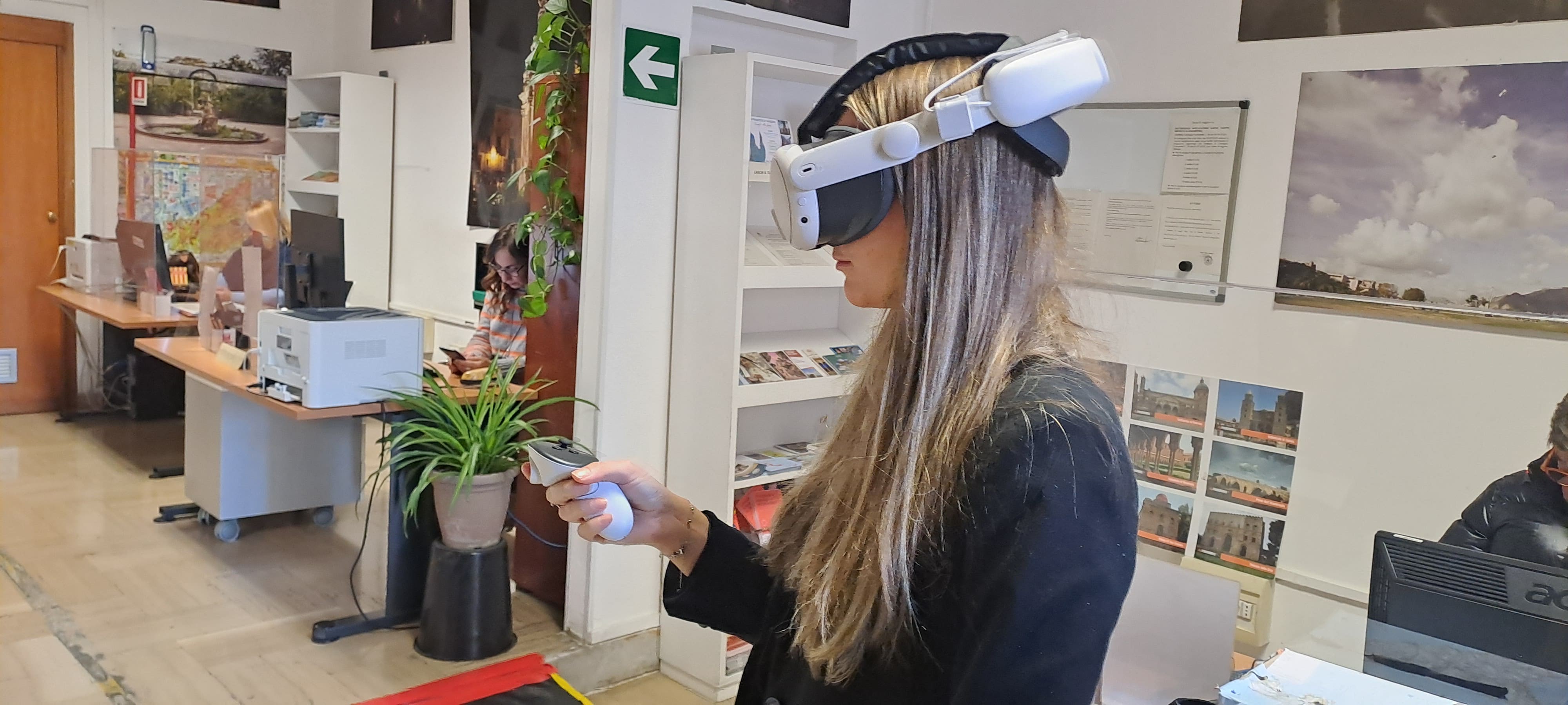 Il Visitor Center propone ai visitatori un’esperienza immersiva e innovativa: grazie a un visore di realtà virtuale di ultima generazione, utilizzabile gratuitamente, è possibile esplorare a 360 gradi alcune delle più rappresentative botteghe artigiane palermitane. Dai maestri della ceramica agli artigiani del vestiario, fino alle storiche pasticcerie, il percorso digitale consente di entrare virtualmente nei luoghi del saper fare artigiano e di viverli come se si fosse realmente presenti.