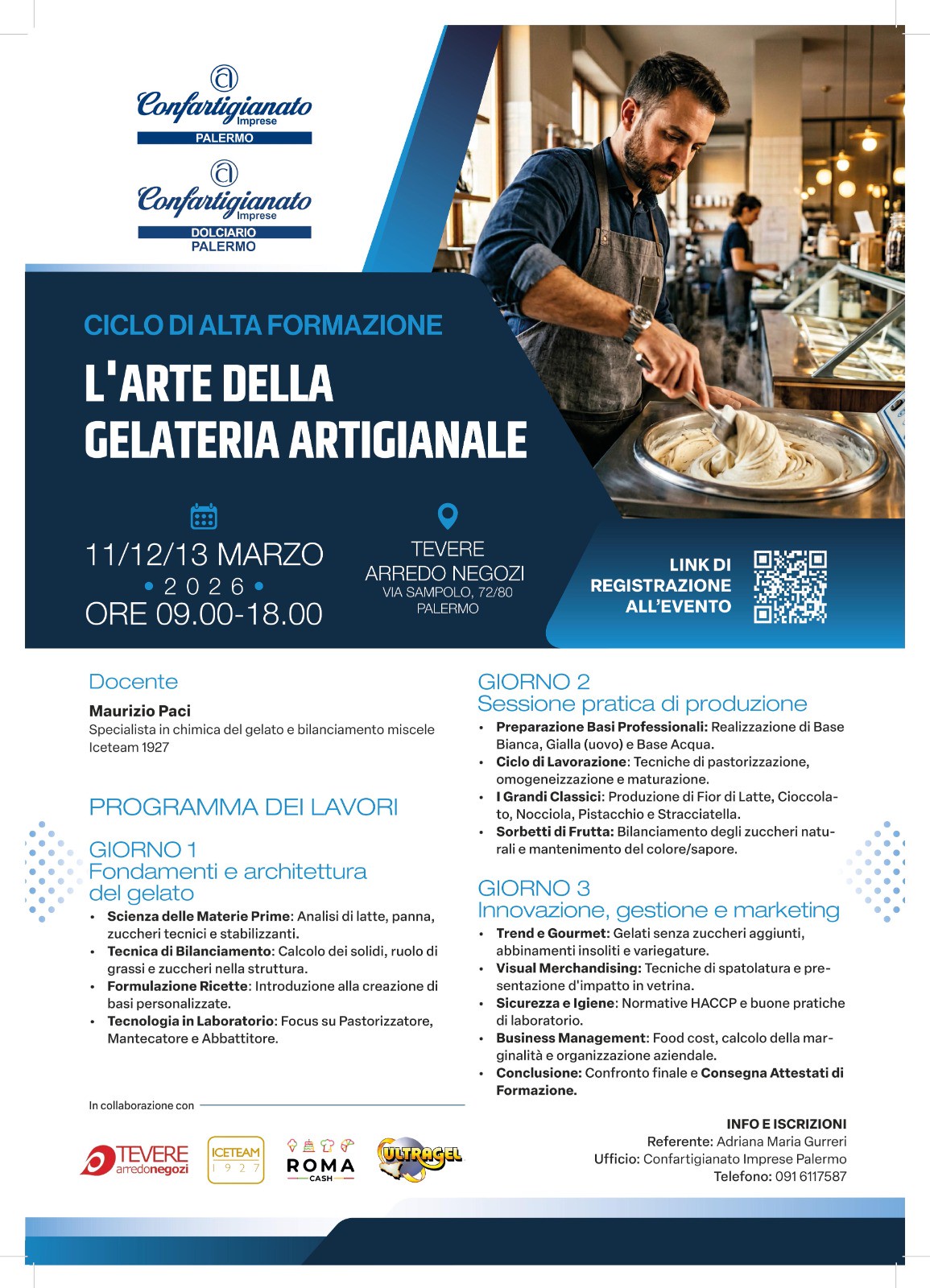 Ampio spazio sarà dedicato anche all’innovazione e al marketing, con moduli su trend gourmet, gelati senza zuccheri aggiunti, visual merchandising per la vetrina e gestione del business attraverso il calcolo del food cost e della marginalità aziendale. L’iniziativa, realizzata in collaborazione con partner di settore come Tevere Arredo Negozi, Iceteam 1927, Roma Cash e Ultragel, si concluderà con la consegna degli attestati di formazione e di una divisa.