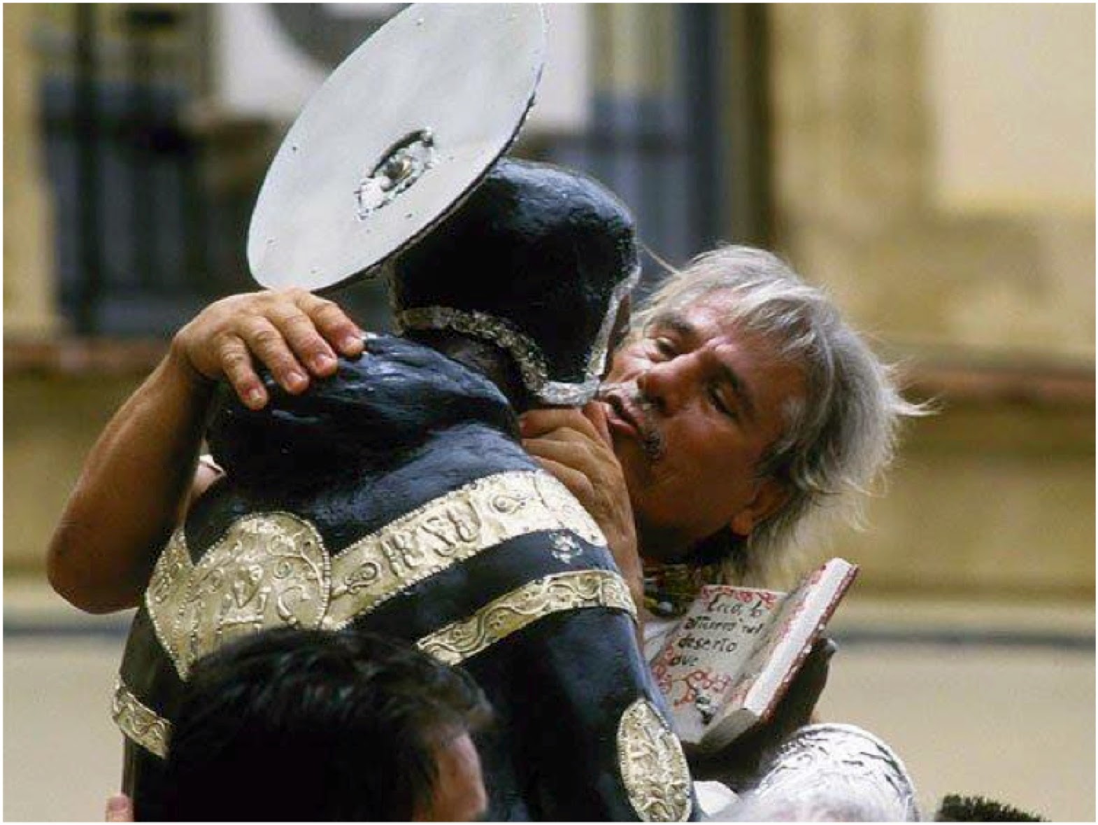 La moltitudine degli adoranti, difatti, ad ogni sosta del santo basiliano, momento questo in cui la venerazione dei fedeli raggiunge vertici frenetici e parossistici, come travolta da un acceso trasporto mistico e allo stesso tempo fisico verso il Santo, si spinge fin sopra la statua per abbracciarla, toccarla e baciarla in un’atmosfera di invasata esaltazione di carattere quasi primordiale. L’assistere a tale spettacolo, la cui regia e coreografia è palesemente ancestrale (balli del Santo, scrolloni della statua, abbacchiatura dei grappoli umani che scalano il simulacro), è, a dir poco, travolgente sul piano emotivo e finisce col rapire estaticamente tutti gli astanti.