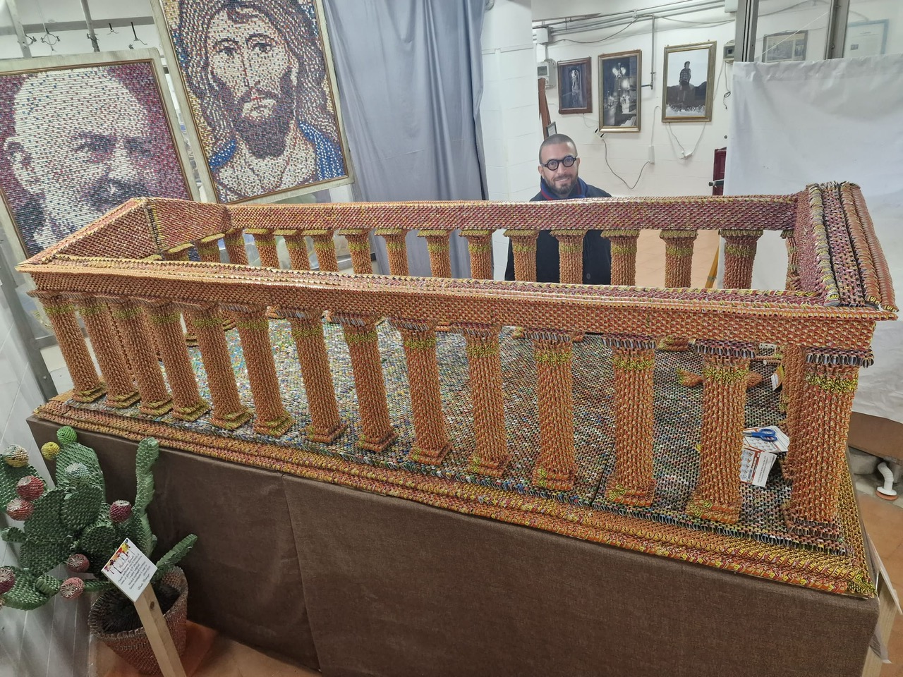 Così ha dato vita a tantissimi oggetti, come fiori, cesti, cornici, uno scooter, frutta e perfino cannoli siciliani! A queste creazioni se ne sono aggiunte alcune che riproducono celebri opere d’arte di fama mondiale, quadri come la Gioconda di Leonardo da Vinci. Per realizzare il tempio che vedete in foto, ad esempio, ci sono voluti ben 70mila Gratta e Vinci!