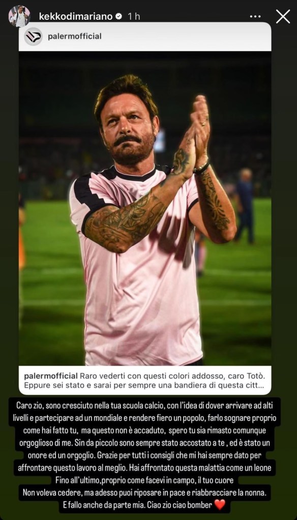 Tra coloro che hanno sofferto di più per questa perdita c’è Francesco Di Mariano, nipote del leggendario attaccante e calciatore del Palermo.