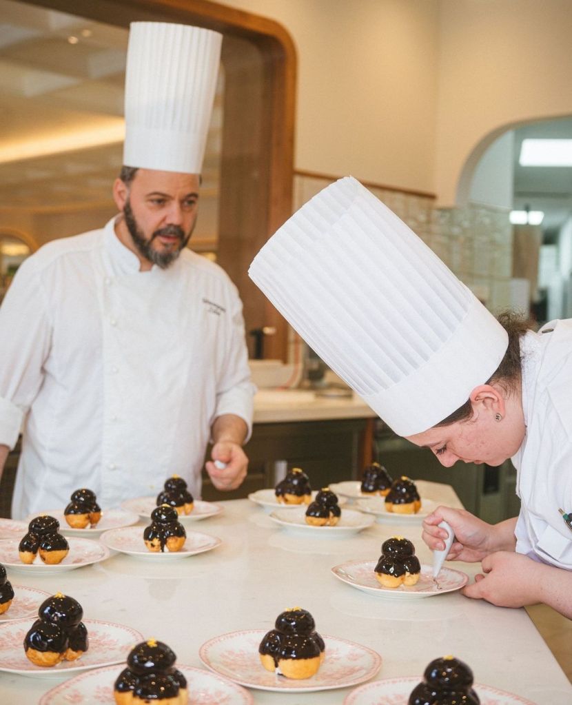 Accanto a lui lavorano due giovani pasticceri di Palazzo Adriano, in provincia di Palermo, Vittorio Masaracchia e Serena Barbato, che contribuiscono con il loro entusiasmo e competenze alla creazione di dolci d’alta pasticceria.