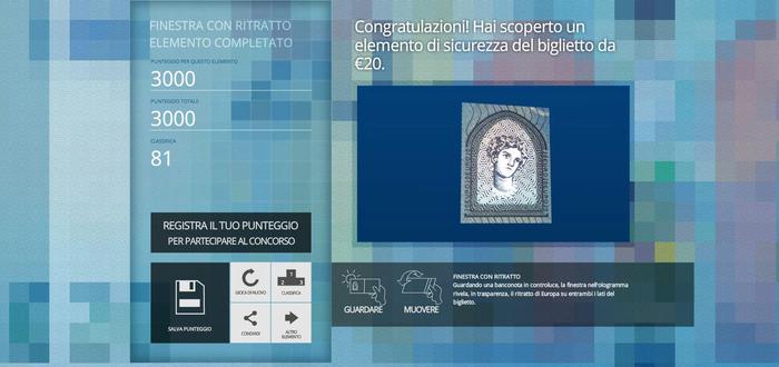 In attesa della presentazione la BCE ha lanciato il gioco online 'Tetris® Nuova banconota da €20' che permette di scoprire in anteprima alcune delle caratteristiche di sicurezza del nuovo biglietto. Tra le caratteristiche di sicurezza del nuovo biglietto c'è l’innovativa 'finestra con ritratto'.