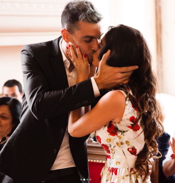 La coppia si è conosciuta quando Pastore giocava nel Palermo. La sposa, per le nozze, ha scelto un abito a fiori rossi, con bouquet in pendant.