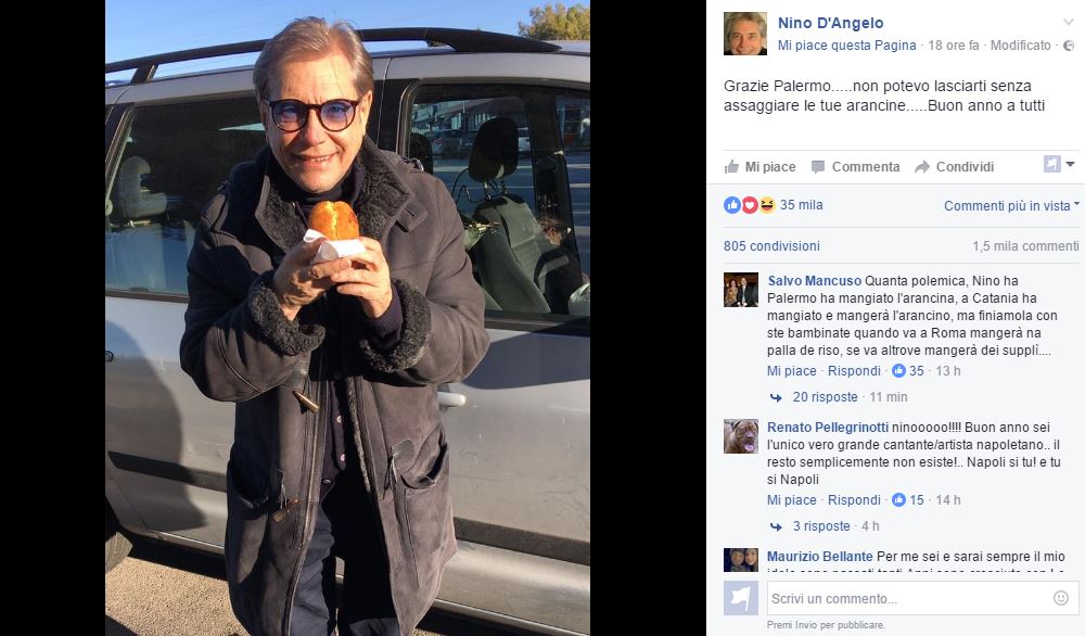 Non sono mancate, naturalmente, le classiche polemiche legate alla scelta del termine "arancina": «Sinceramente è come se non l'avessi mai mangiato… Primo si chiama ARANCINO e non ARANCINA… secondo non sapranno mai come quelli della mia amata catania…ciao nino buon 2017 a te e famiglia…», scrive uno dei fan; «Nino, si dice arancina, lo dice un palermitano doc. Sei grande ieri hai fatto emozionare tutti!», aggiunge qualcun altro.