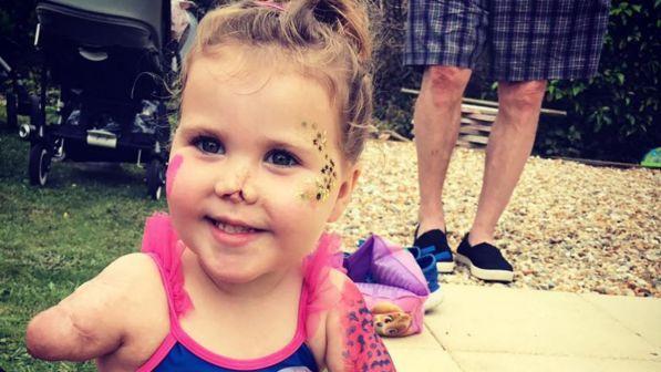 La diagnosi è stata l'inizio di un inclubo: "I medici continuavano a dirci che avremmo dovuto dire addio alla nostra bambina e non potevamo farci nulla". Nel tentativo di salvarla i dottori le hanno amputato tutte le estremità del corpo, persino la punta del naso. "Quando siamo tornati a casa la situazione era surreale, tutti i giochi che le avevamo acquistato per il primo compleanno non andavano più bene per lei. A guardarla mi si spezzava il cuore, ma allo stesso tempo ero così felice che fosse qui con noi", ha affermato la mamma. Prima ha imparato a giocare, a mangiare, e ora sta imparando a camminare con le sue piccole protesi. "È straordinaria, non si ferma davanti a nulla, non si arrende mai, non si demoralizza", nota felice la sua mamma.