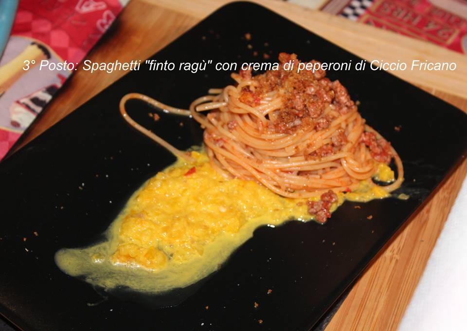 3° Posto che si aggiudica una cena per due persone presso Lamagia dei sapori, Ventimiglia, Ciccio Fricano con i suoi spaghetti "finto Ragù" su crema di peperoni.