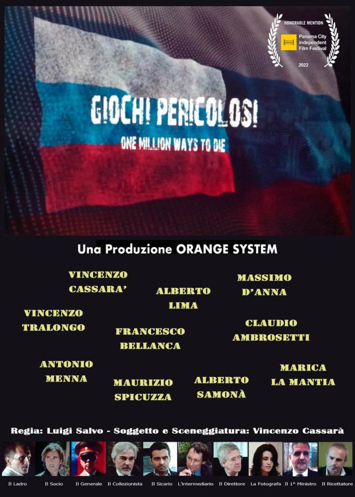 “Dopo la realizzazione del suddetto corto abbiamo ripreso in mano la realizzazione di un vecchio progetto più ambizioso (questa volta un soggetto originale, dal titolo italiano ‘giochi pericolosi’, in inglese invece One million ways to die) ispirato agli Spymovies e Heistmovies anni ’70 (come Telefon di Don Siegel o Il caso Thomas Crown di Norman Jewison tanto per citarne qualcuno) ambientato in diverse parti del mondo e avente al centro del plot narrativo una grossa rapina commissionata da un misterioso cliente ad un gruppo di rapinatori professionisti con un epilogo a sorpresa nella città di Mosca. Quest’ultimo lavoro rispetto al precedente (anch’esso impegnativo comunque) è caratterizzato da un notevole sforzo produttivo sia in termini artistici che materiali, come l’accurata ricostruzione in loco degli ambienti interni per adeguarli agli esterni ad esempio, teso soprattutto a dare credibilità alla storia e quel respiro internazionale che la Sicilia può dare a discapito di tutti coloro che la vorrebbero succube delle solite faide mafiose. Pertanto rifacendoci a ciò che diceva il grande Sergio Leone “quando fai cinema pensa in grande”, abbiamo realizzato questa storia rifacendoci ai classici americani del cinema anni ’70 strizzando l’occhio ai polizzioteschi italiani dello stesso periodo (tanto cari a Quentin Tarantino così come tutti i film di genere italiani dello stesso periodo) immaginando la nostra Sicilia come la nuova Almeria (regione desertica spagnola dove sono stati girati tutti western italiani tra cui i capolavori di Leone, Corbucci e altri) dove potere ambientare film di tutti i generi (storici, western, fantascienza etc.) senza doverla accostare necessariamente ai soliti stereotipi regionali”, ha continuato Vincenzo Cassarà.