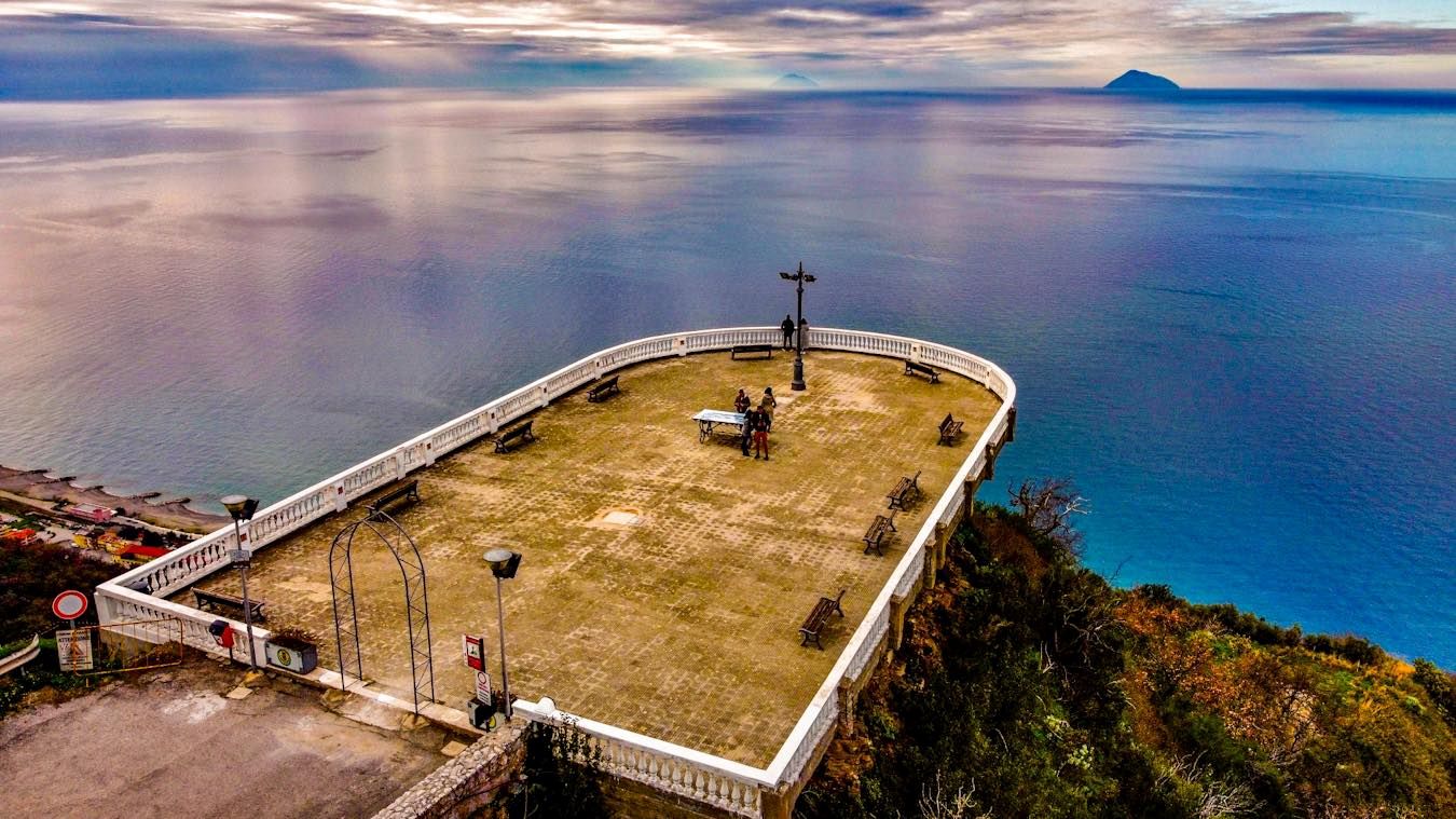 Quella spettacolare terrazza è la Guardiola di Piraino. Un suggestivo belvedere, situato fuori dal centro storico della cittadina. Dai suoi 380 metri di altitudine a strapiombo sul mare, offre un panorama straordinario in ogni momento della giornata.
