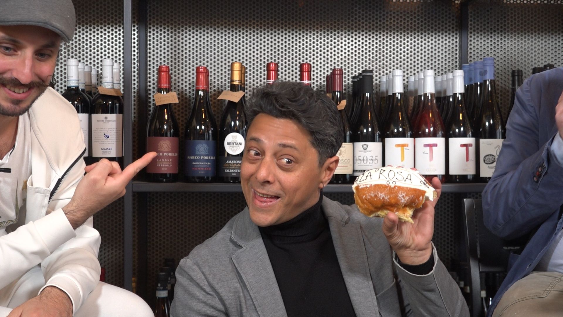 Nel corso dell’intervista – dove Cardinale Sortino sono stati supportati nuovamente dall’avvocato e comica Simona Bonomo, con la banconista della gelateria Il signor di Carbognano Maria Rappa – svoltasi nel locale palermitano Chiosco, non è mancato uno scherzo a Gabriele Sbattella, alias l’Uomo Gatto, il concorrente più famoso uscito dal quiz musicale Sarabanda.