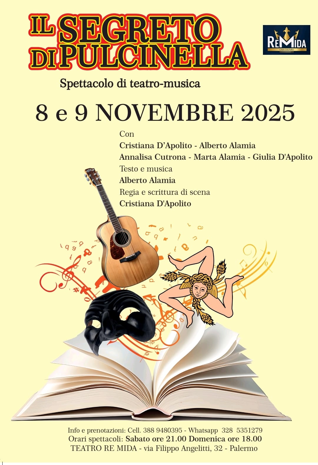 Al teatro Re Mida di Palermo, l’8 e 9 novembre prossimi arriva uno spettacolo di teatro e musica molto divertente di cui già il titolo è tutto un programma: ” Il segreto di Pulcinella”.