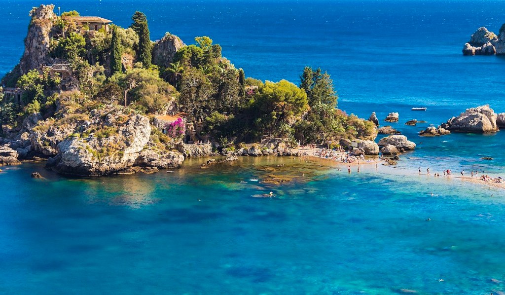 Isola Bella, situata al largo delle coste di Taormina, in provincia di Messina, è una piccola isola caratterizzata da acque cristalline e spiagge di sabbia bianca. È considerata una delle spiagge più belle d’Italia e attira visitatori da tutto il mondo.