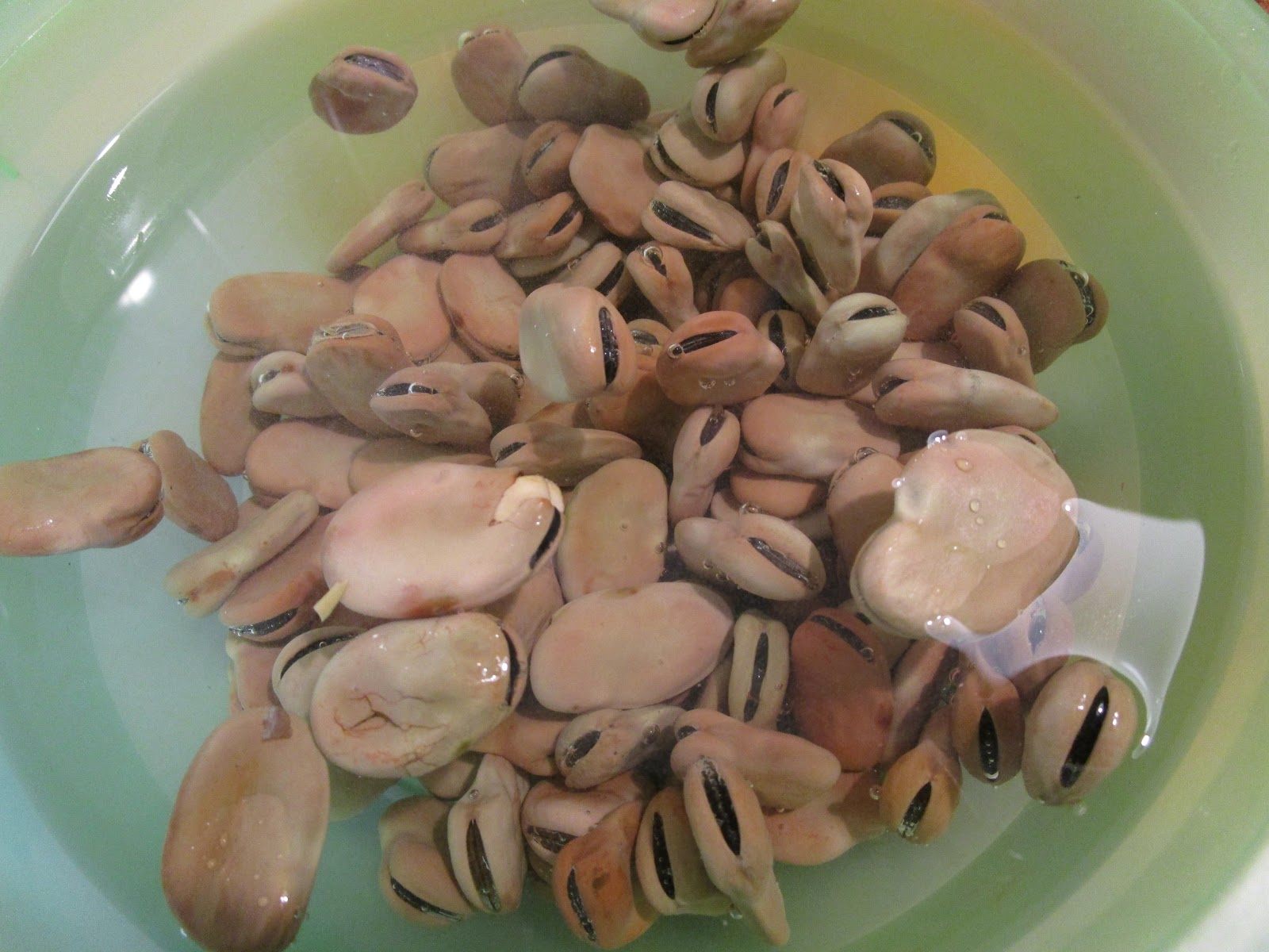 Si tengono a bagno per una notte (come si fa con i legumi secchi) e poi si lessano in abbondante acqua con una foglia d'alloro, per circa due ore. Il sale si aggiunge a metà cottura. Quando saranno morbide, si scolano e si servono con il pinzimonio .