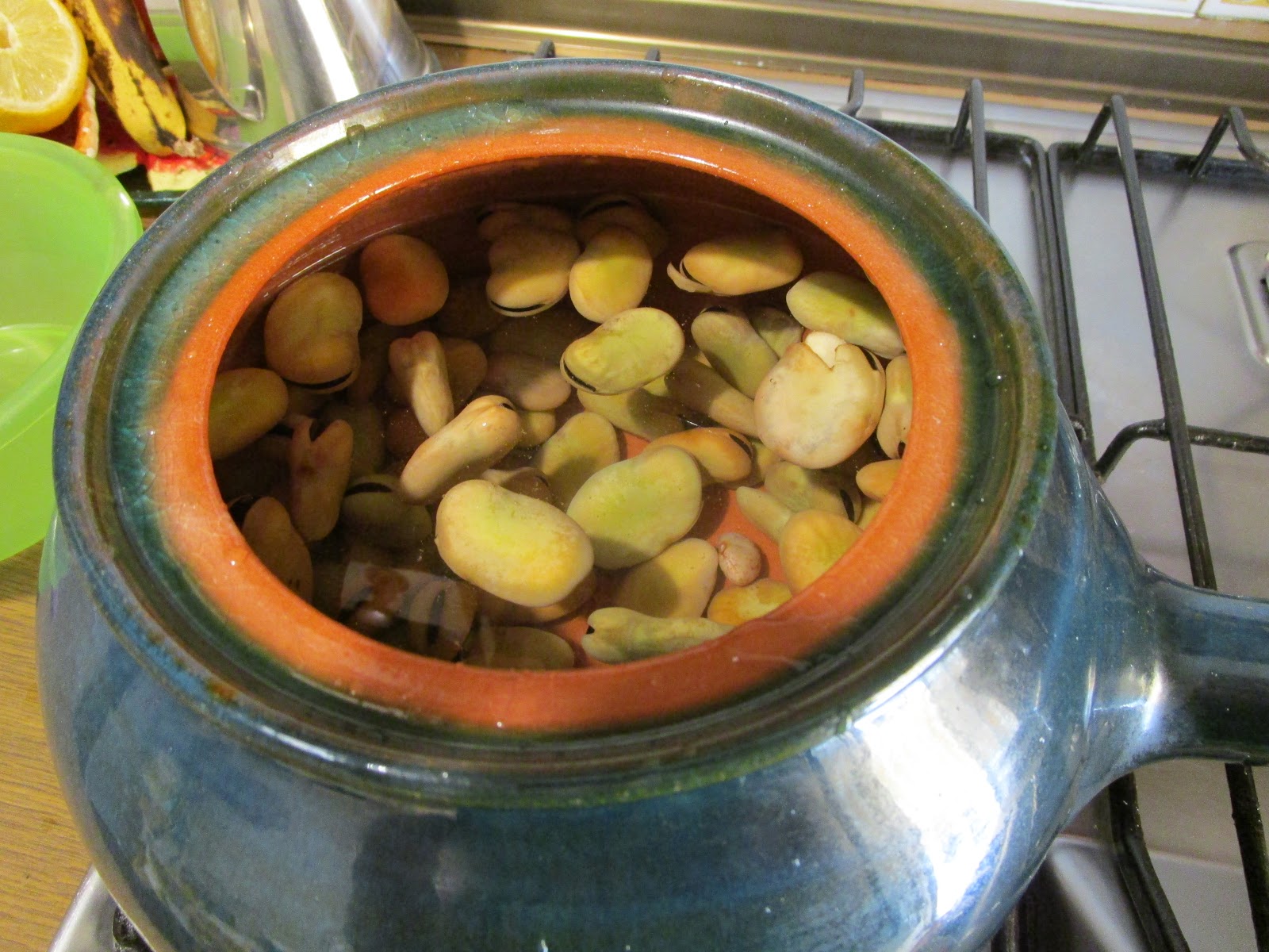 – cuocere in abbondante acqua con una foglia d'alloro sino a che saranno morbide (almeno 2 ore)