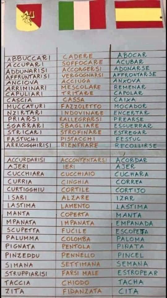 Ancora oggi, molte delle parole che utilizziamo tutti i giorni nella “parlata siciliana” provengono da lontano e rievocano dominazioni avvenute nel passato. Ce ne sono di origine araba, francese e latina, ma ce ne sono in abbondanza anche dallo spagnolo. Nel 1479 la nostra Isola fu dichiarata vicereame spagnolo e rimase alla Spagna fino al 1712.