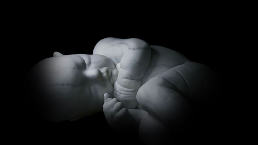 Un bambino di marmo bianco, rannicchiato in posizione fetale, è posizionato da oggi al centro del Cortile Maqueda del Palazzo Reale di Palermo, rivolto verso uno dei luoghi spirituali più importanti al mondo, la Cappella Palatina, simbolo della convivenza tra culture e religioni diverse.
