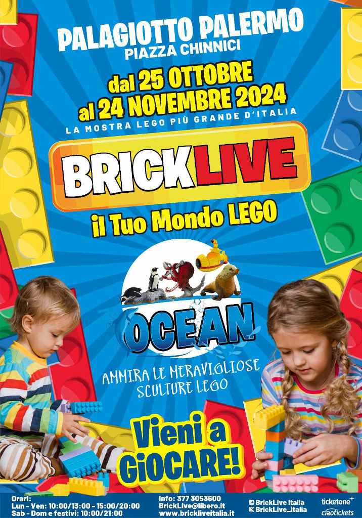 Dal 25 ottobre al 24 novembre 2024, il Palagiotto di Palermo, in piazza Chinnici, ospiterà l’evento internazionale “BrickLive – il tuo Mondo LEGO e BrickLive Ocean”, un appuntamento imperdibile per bambini e adulti. La manifestazione, che ha conquistato il mondo, promette di regalare ore di divertimento in un ambiente stimolante ed educativo, dove la creatività non conosce limiti.