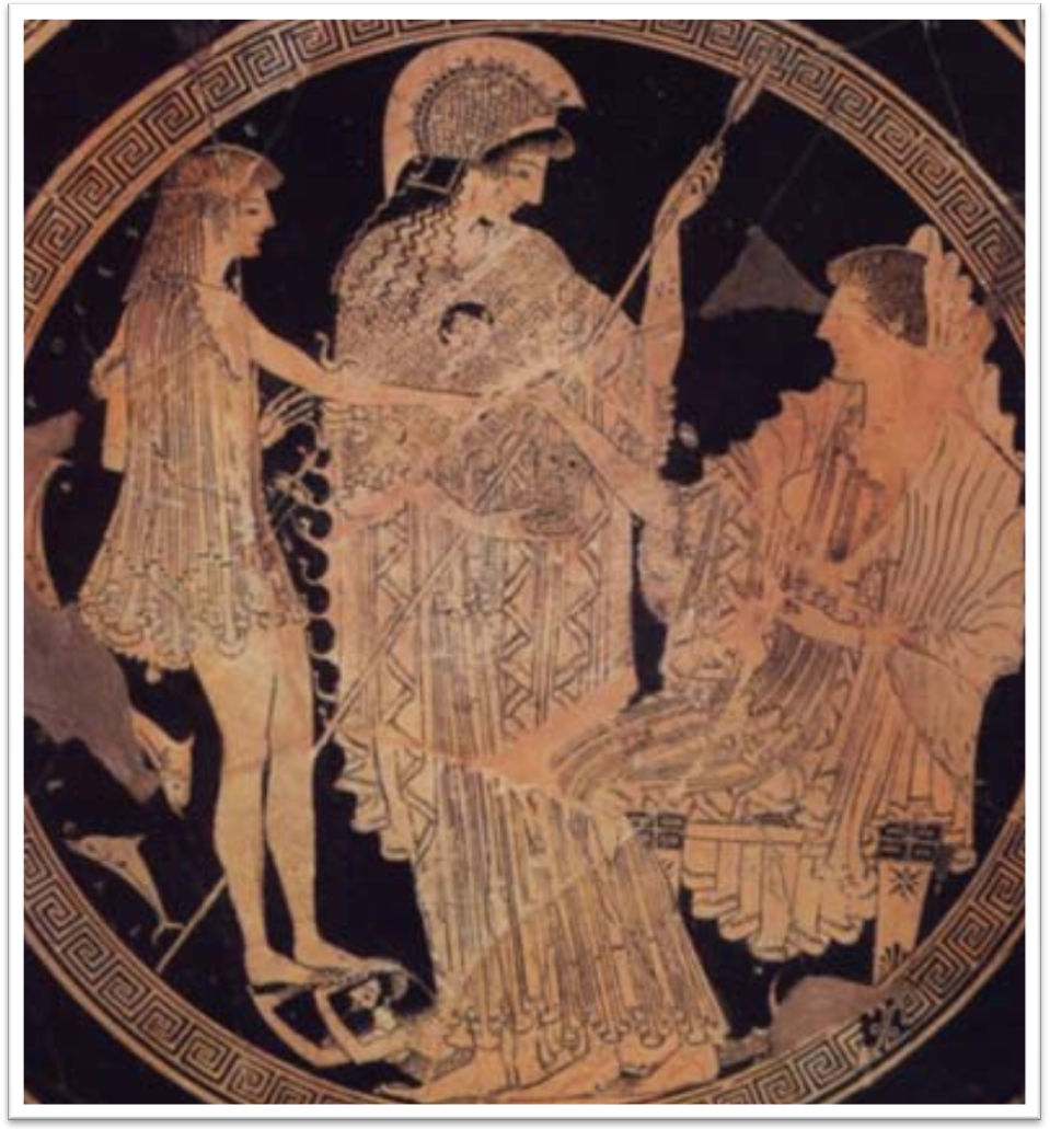 | Teseo e Anfitrite. Coppa attica a figure rosse, opera del vasaio Eufronio e del pittore Onesimo (ca. 490 a.C.). Parigi, Louvre. |