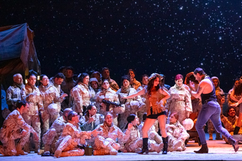 Opera della maturità, Otello, dramma lirico in quattro atti,è composto da Verdi nel 1887, a 74 anni, dopo Aida e prima di Falstaff, su libretto del giovane poeta e musicista Arrigo Boito. Il loro sodalizio artistico porterà a una straordinaria interpretazione del dramma shakespeariano, tragedia dell’amore e della passione che tormenta e uccide, ieri come oggi. La messa in scena di Mario Martone trasferisce la vicenda, che nel libretto è ambientata a Cipro alla fine del quindicesimo secolo, nel presente, tra i soldati di un esercito occidentale in medioriente. “Il tempo che passa – scrive Mario Martone nelle note di regia – ci rivela che nessun progresso ferma la spinta brutale di troppi uomini nell’aggredire le donne che dicono di amare fino ad ammazzarle. E questo è un tema, e che tema, dell’Otello di Verdi. Per provare a farlo risaltare il più possibile ho spostato l’azione nel nostro tempo. Ho mantenuto la struttura narrativa dell’opera … Totale fedeltà, dunque. Ma trattandosi di un esercito contemporaneo anche le donne sono soldati, e lo è Desdemona, che viene rappresentata come una soldatessa valorosa e amata. Dunque anche lei è odiata da Jago, e vista immediatamente attraverso lo sguardo che fa di una donna libera “una vil cortigiana” … Nel provare questo spettacolo tante cose sono venute in luce, fino alla canzone del salice, che lega Desdemona, sua madre che gliela cantava, Barbara di cui si racconta e Emilia che ascolta il canto in una sola stretta, e questa stretta parla chiaramente di una condizione femminile per tanti versi immutata dai tempi di Verdi. La sensibilità di Verdi per le figure femminili– prosegue Martone – la sua capacità di empatizzare con la loro sofferenza e di denunciare la società che le produce, fa anche di Desdemona una creazione unica. Oltre a rivelare, una volta di più, quanto potente sia lo scandaglio che Verdi sprofonda nelle nostre coscienze, ancora oggi”.