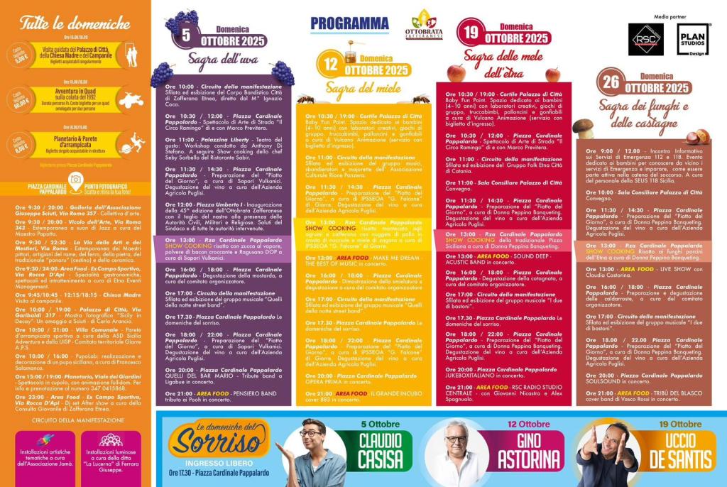 L’edizione 2025 dell’Ottobrata non sarà solo gusto e sapori. Sono previste visite guidate al Palazzo di Città, con mostre fotografiche e opere del pittore Giuseppe Sciuti e di autori contemporanei, oltre al percorso in quad sulla colata lavica del 1992.