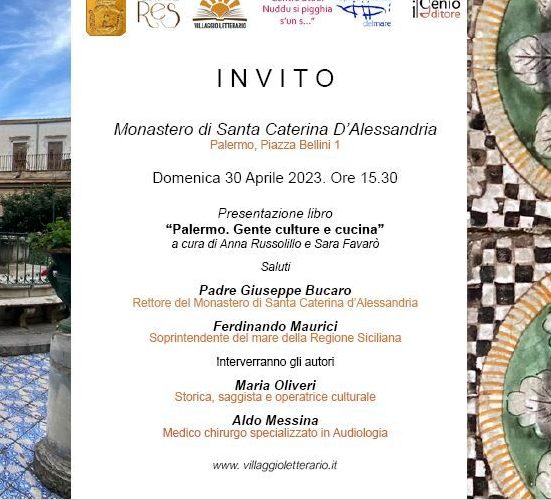 Sarà presentato domenica 30 aprile, alle 15,30 nel Monastero di Santa Caterina di Alessandria (in piazza Bellini 1, a Palermo) il volume “Palermo. Gente culture e cucina” pubblicato nell’ambito della collana di studi diretta da Anna Russolillo ed edito dall’Associazione Villaggio Letterario.