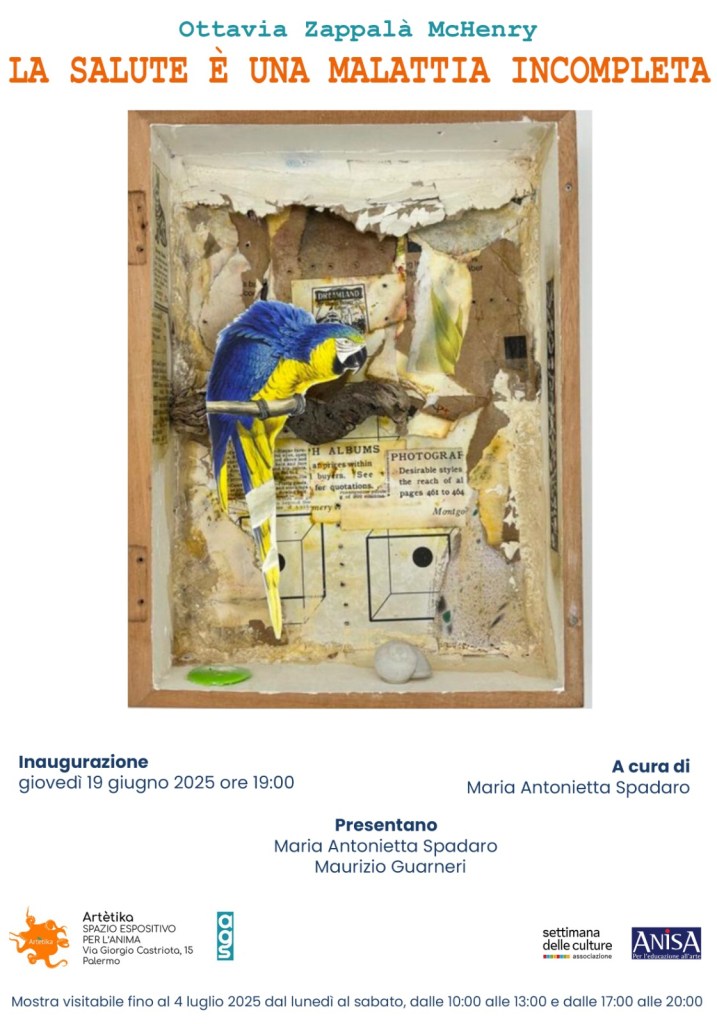 Palermo accoglie Ottavia Zappalà McHenry (Ottavia McHenry), palermitana di nascita e statunitense d’adozione, che giovedì 19 giugno 2025, alle 19,00, presso la Galleria Artètika spazio espositivo per l’anima (in via Giorgio Castriota 15), inaugura la sua mostra personale, intitolata “La salute è una malattia incompleta”. In esposizione circa cinquanta opere tra “box” e collage, in un percorso visionario che affonda nel subconscio e nelle nostalgie infantili.