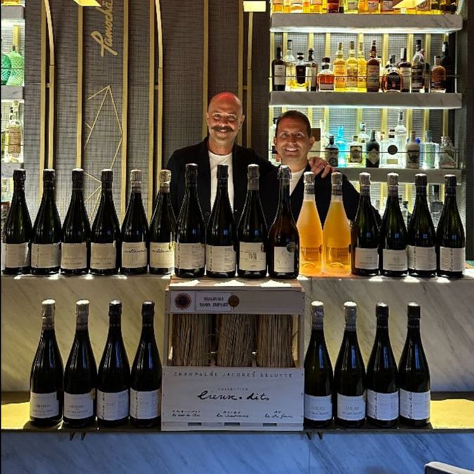 Le quattordici etichette saranno accompagnate da pregiate produzioni internazionali. Ecco il menù della serata: mafaldine con mortadella, zeste di limone e pepe nero, ostriche Gillardeau, crostini con burro francese e alici del Cantabrico, buns con foglie di patate, verdura di campo e wagyu A5, baguette con pomodoro e jamón ibérico de bellota, tris di tartare di fassona piemontese, focaccia con pomodoro, cozze galiziane e caviale, selezione di formaggi francesi, caviale. La degustazione verrà condotta da Manlio Giustiniani, Champagne expert e wine consultant.