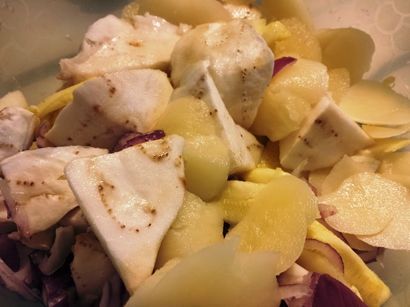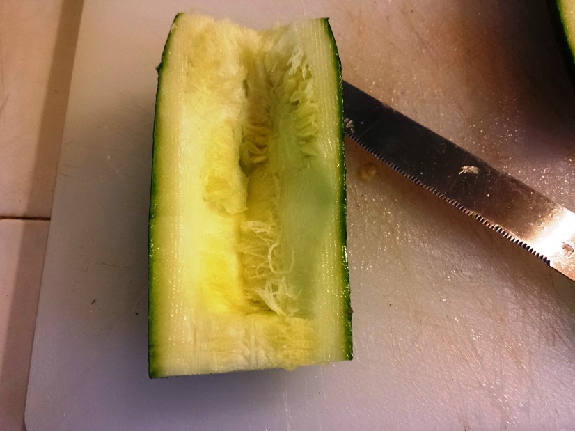 – dividere a metà e a tocchi le patate, le zucchine e scavare la polpa, mettere da parte