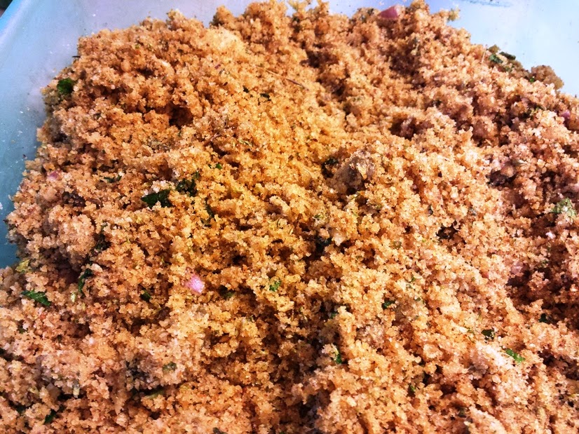 – preparare il ripieno tritando grossolanamente la polpa scavata dagli ortaggi, una cipolla piccola, le mandorle tostate, il sale aromatico, i capperi e olio d'oliva