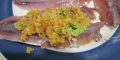 Ho voluto provare le alici, farcite con un profumato mix di pangrattato, formaggio, pistacchi e erbe aromatiche, adagiate su un letto di patate condite con capperi eoliani, pomodorini , peperoncino e pochissimo olio. Vi assicuro che il risultato è stato un piatto di grandissimo gusto, leggerissimo e unico, per la presenza, anche del contorno di patate e dei pomodorini.