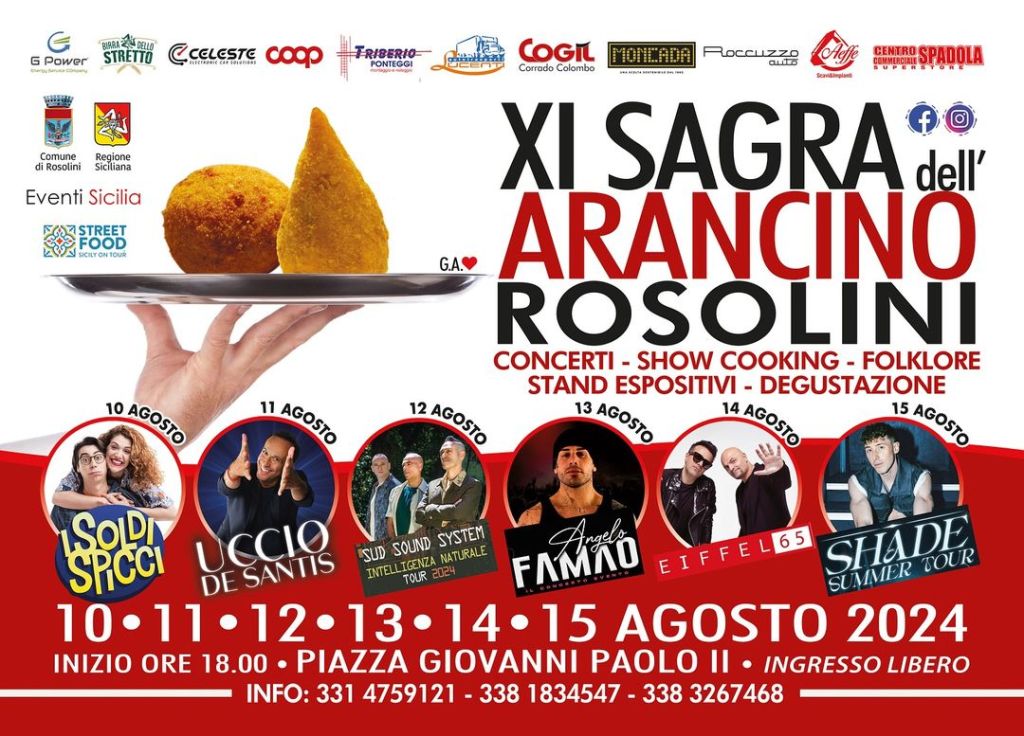 Manca davvero poco alla XI edizione della Sagra dell’Arancino di Rosolini (SR), in programma dal 10 al 15 agosto 2024 con musica, folclore, spettacoli e degustazioni di prodotti tipici del territorio. La “città del carrubo” diventerà un grande palcoscenico per “sua maestà” l’arancino, in questo caso declinato al maschile, come è consuetudine nella Sicilia orientale.