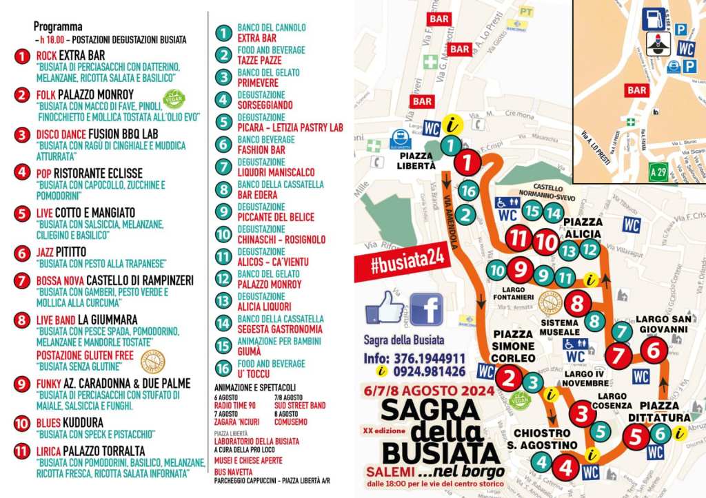 Nel corso della manifestazione, le vie del centro storico si animeranno con tante attività. Quest’anno i maestri pastaioli locali si sfideranno per presentare le loro migliori interpretazione di questo formato di pasta, tra condimenti classici e rivisitazioni creative. La busiata ha una caratteristica forma a spirale, derivante dalla lavorazione a mano, con una tecnica che si tramanda di generazione in generazione.
