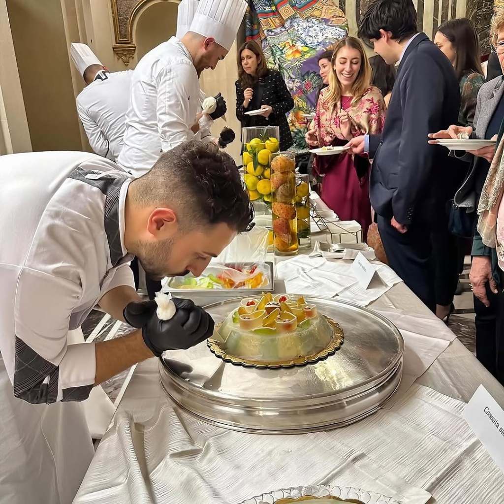 Durante la serata, il menù siciliano ha stupito i presenti con piatti simbolo come la pasta al forno e la pasta con le sarde, preparati a vista. A completare l’esperienza, dolci iconici come i cannoli e la cassata, realizzati davanti agli occhi curiosi di oltre 70 ospiti italiani e francesi.