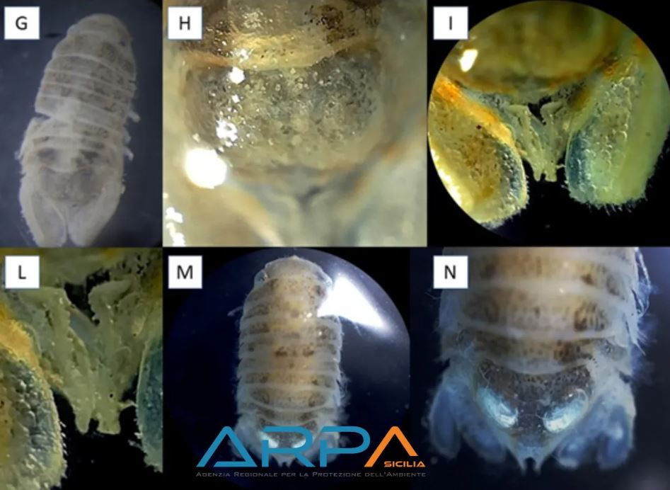 Nella stessa area del porto di Catania, nei campioni derivati dai pannelli in PVC è stata evidenziata la presenza del crostaceo isopode Dynoides amblysinus Pillai, 1954. Da ricerche e confronti con esperti è emerso che la specie non è stata ancora segnalata per le acque mediterranee. L’isopode in questione risulta con un areale noto che va dall’India all’Australia.