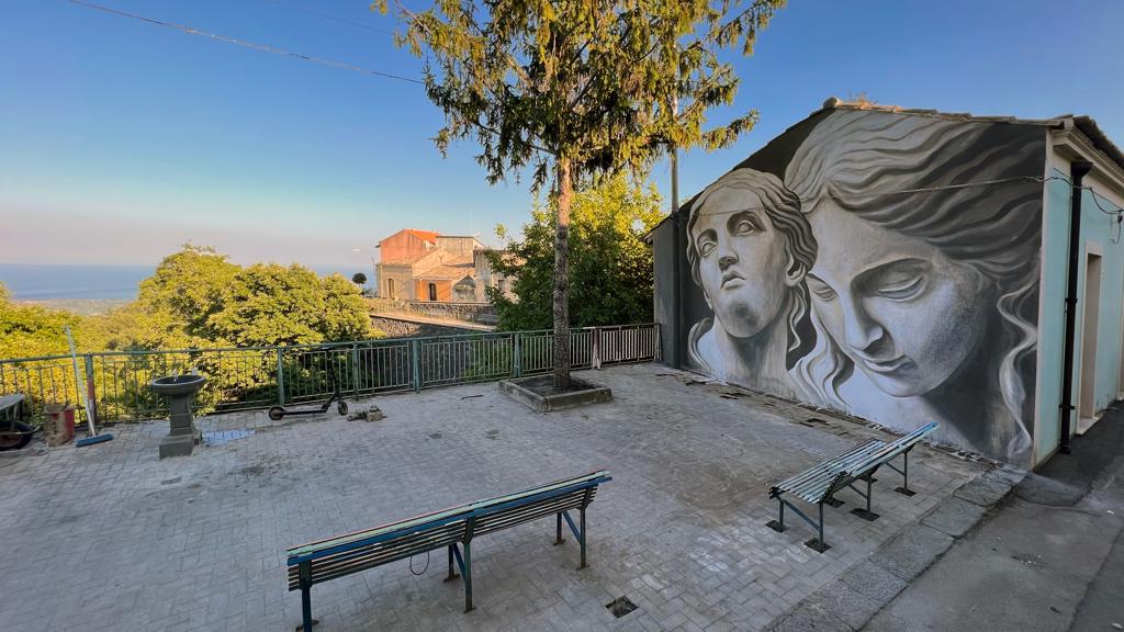 Il murale è l’ultimo di una serie di interventi di valorizzazione territoriale delle due associazioni a Presa. Borgo collinare tra Taormina e l’Etna, per anni in abbandono ma che oggi viene riscoperto sempre più da visitatori e turisti. “Abbiamo voluto riportare il paese sulle mappe della Regione”, sottolineano gli attivisti. Fondamentale per l’iniziativa l’incontro con Ligama, artista originario di Caltagirone dalla fama ormai internazionale. La cornice scelta, ispirata al genius loci di Presa e della Sicilia, è il prospetto di una privata abitazione affacciata sul Belvedere che però, da anni, veniva impropriamente usato come parcheggio. “Coniugando tale prestigiosa iniziativa – aggiungono Vasta e Catanzaro – alla riqualificazione urbana di Presa, abbiamo chiesto e ottenuto dall’Amministrazione di Piedimonte Etneo il ripristino della pedonalizzazione della piazzetta, da tempo in condizioni di degrado. L’opera riconsegna così alla pubblica fruizione uno spazio di grande interesse paesaggistico”.