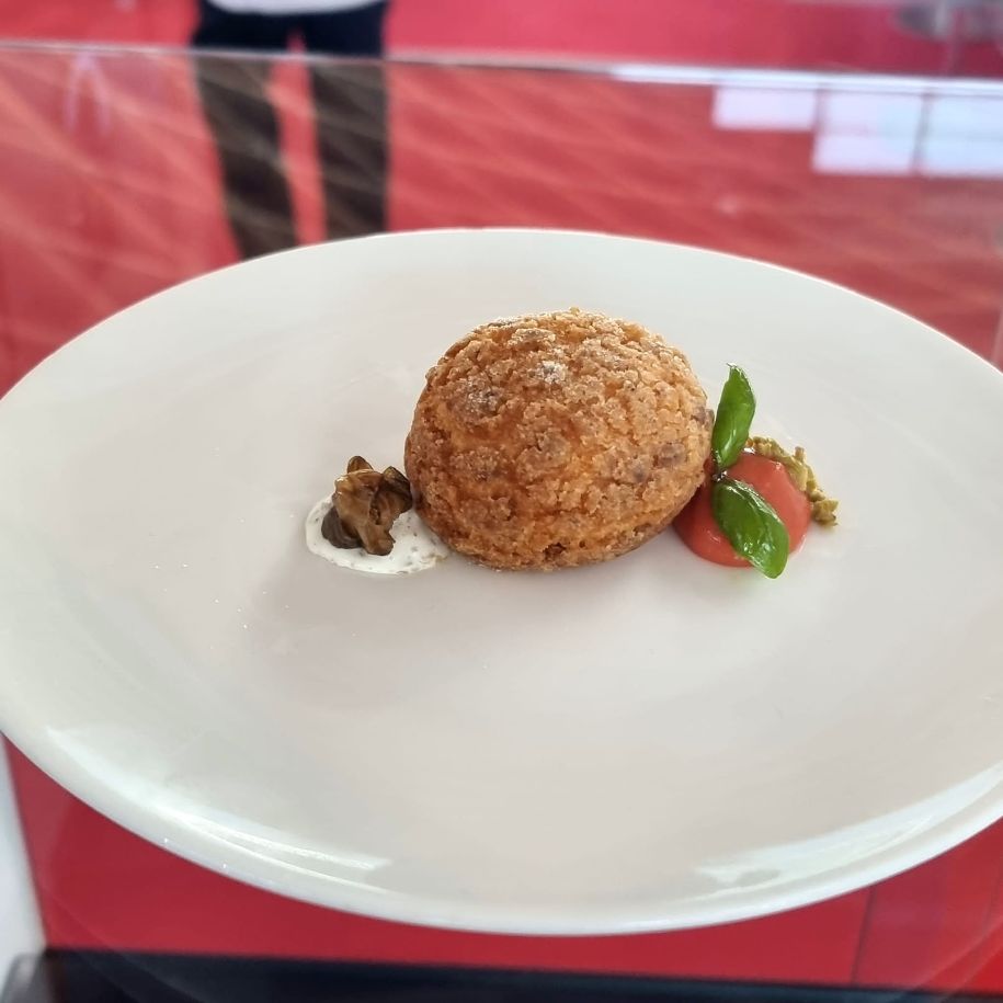 Gli chef del Culinary team Palermo hanno conquistato i giudici con un menù d’ispirazione siciliana che si apriva con una “Matrioska palermitana”, un bignè salato ripieno di caponata di pesce. Seguiva lo starter “Vento di montagna” dei tortellini di pasta fresca al fiocchetto selvatico con ripieno di ricciola, uvetta e pinoli su ristretto aromatico di ricciola, spuma di ricotta e “muddica atturrata”. Il main course “Trazzera al tramonto” era un filetto di bovino con la sua demiglase, purea di patata e zucca al sifone, flan di cavolfiore verde palermitano “arriminato”, spugna alle erbette di montagna, asparago arrosto e carotina confit. Il menù si è chiuso con il dessert “Zyz, Palermo la sua Primavera”, un piatto composto da una mousse al cioccolato fondente con inserimento di fragola della Basilicata, bavarese al limone e salsa alle fragole, gelato al basilico su crumble croccante, brownie al cioccolato bianco, composta al tardivo di Ciaculli e salsa al caramello al mandarino.