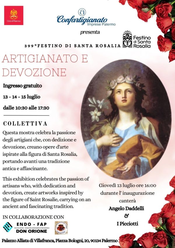 La mostra organizzata da Confartigianato, in collaborazione con l’ente di formazione Endofap, presso Palazzo Alliata ha riscosso un grande successo, portando alla luce l’amore e la devozione dei mestieranti per Santa Rosalia.