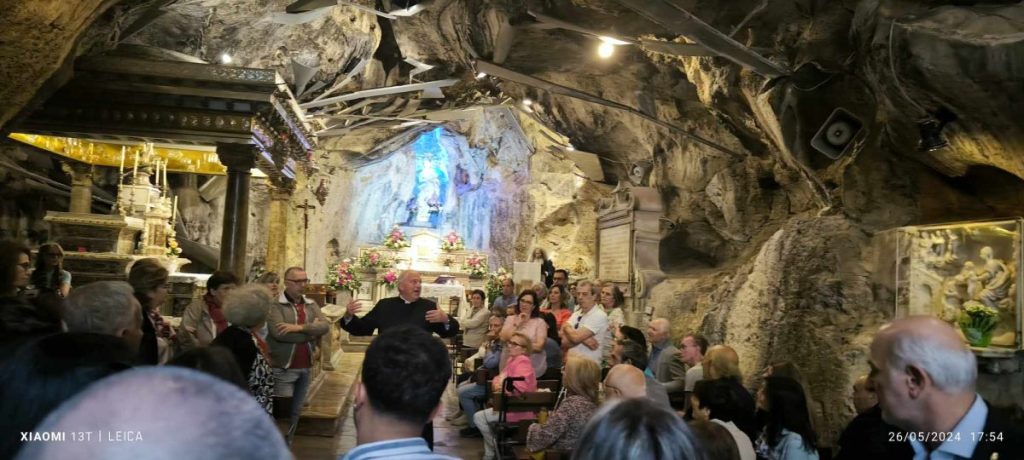 Lo svelamento è avvenuto dopo la celebrazione della Santa Messa al Santuario e, al termine della funzione, il Simulacro della Santuzza è stato benedetto con l’acqua proveniente dal pozzo interno alla grotta del Santuario, prelevata per l’occasione con un secchio in diretta davanti ai fedeli.