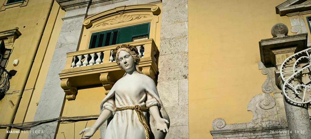 Da oggi, 27 maggio, la statua della Santuzza sarà esposta in Cattedrale per volontà del Parroco Mons. Filippo Sarullo e del Vicesindaco Giampiero Cannella. La statua del IV centenario ci accompagnerà per tutto l’anno Giubilare, mostrandosi il 26 maggio a Montepellegrino e, in maniera del tutto innovativa, apparirà durante il corteo del 14 sera. È un’immagine aulica, dal forte senza sacrale e misterioso. La ritroveremo anche la notte del 3 settembre ad accogliere i fedeli per la tradizionale “acchianata” e, per tutto l’anno giubilare, sarà esposta presso la cattedrale di Palermo.